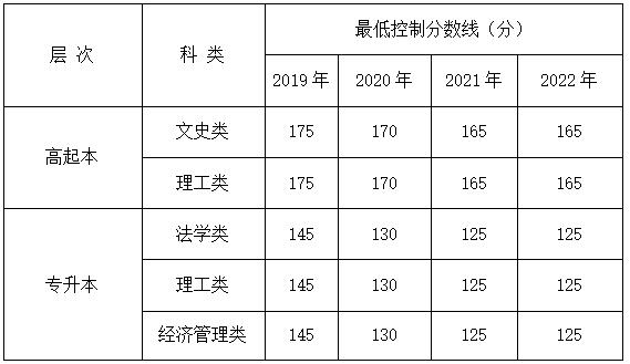 陕西省2019年-2022年成人高考录取最低控制分数线